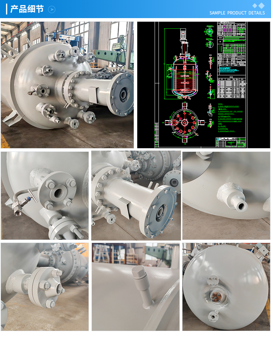 | 主要材料 | 釜体材料主要采用不锈钢与碳钢复合材质 S30408(304)+Q345R、S31603(316L) +Q345R、S32168(321)+Q345R, 也可是纯不锈钢材质,并可根据不同介质要求制作钛材、镍材、锆材、哈氏合金、蒙耐尔合金等复合材质反应釜,也可根据客户要求主要材料喷涂四氟PTFE/PPL。 | ||||||
